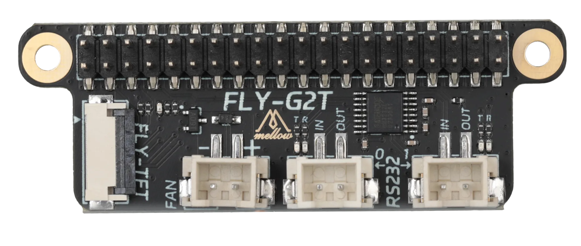 FLY-G2T多功能扩展板是为了扩展树莓派与FLY上位机功能而设计的高性能模块。它支持UART通信,集成了FPC接口可外接TFT-V2,并且还支持5V风扇控制。这使得它成为一个理想的解决方案,用于增强树莓派在各种应用中的互动性和可用性,例如在工业自动化、3D打印机、家庭自动化、机器人控制或任何需要人机界面和外部通信的场合。
