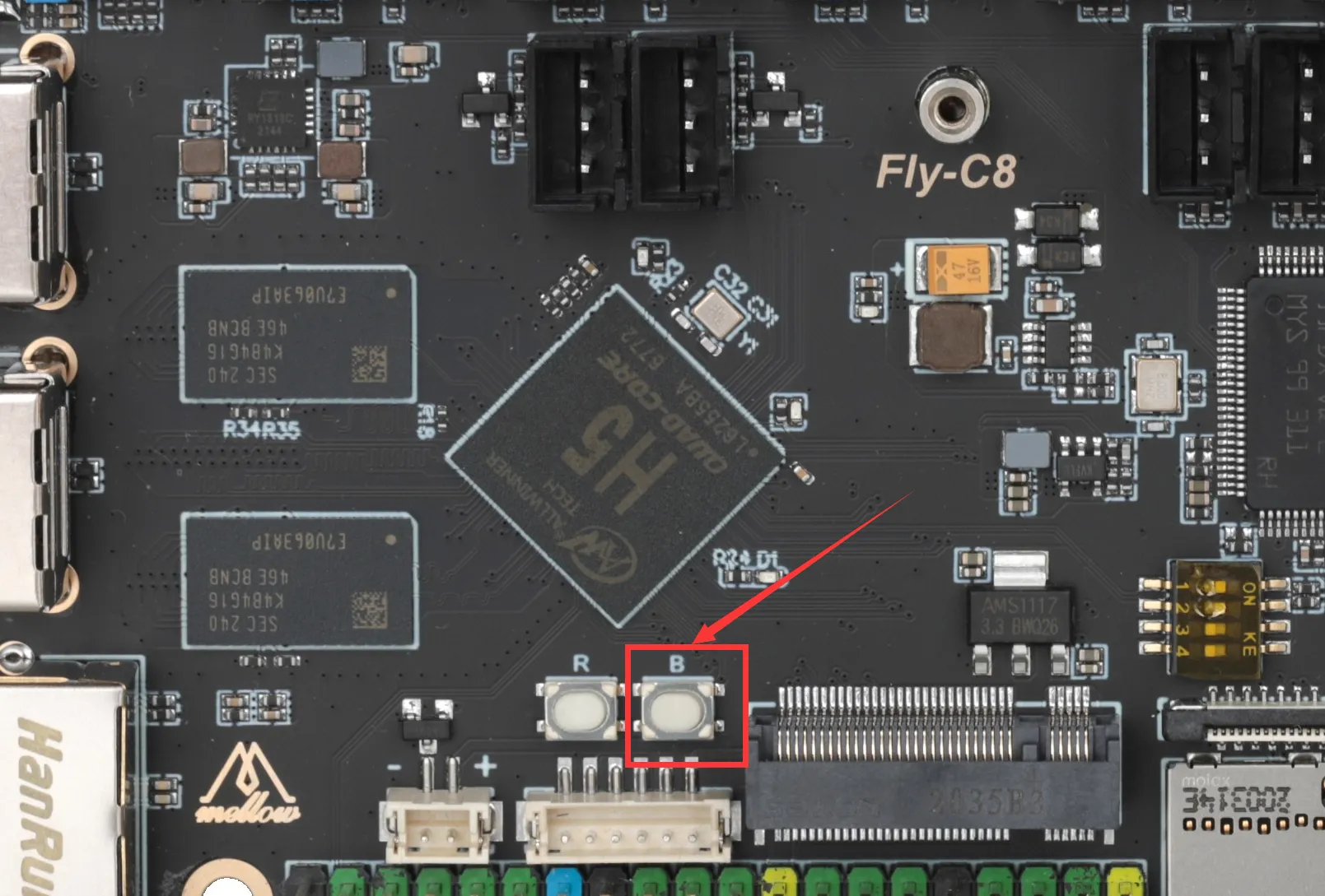 - 在将系统烧录到TF卡后,需要将TF卡接到C8此处,否则系统无法启动