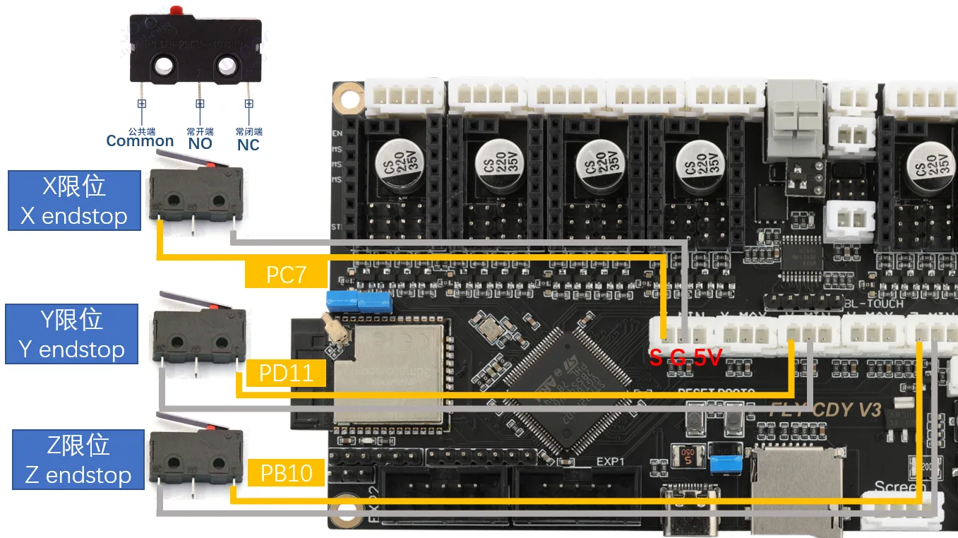 限位开关有常开(NO)和常闭(NC)两种。一般在3D打印机上,建议使用常闭(NC),这样在限位开关线路出现问题时,系统会及时报错,可以避免一些不必要的撞车,避免损坏打印机。