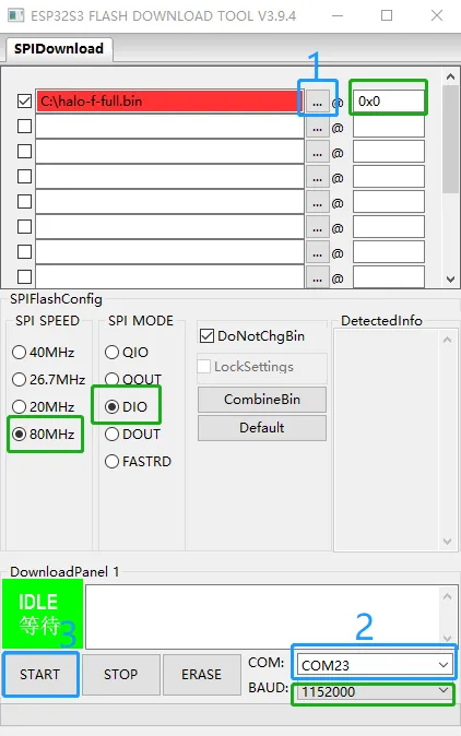 - Download and extract the USB flashing tool flash_download_tool_3.9.4.zip (click to download)