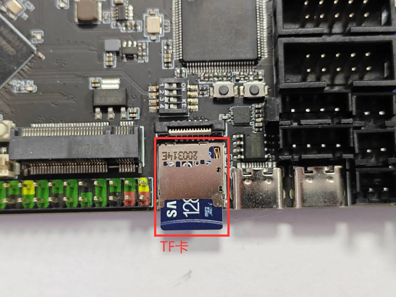 - After burning the system to the TF card, the TF card needs to be connected to this location on C8, otherwise the system cannot start
