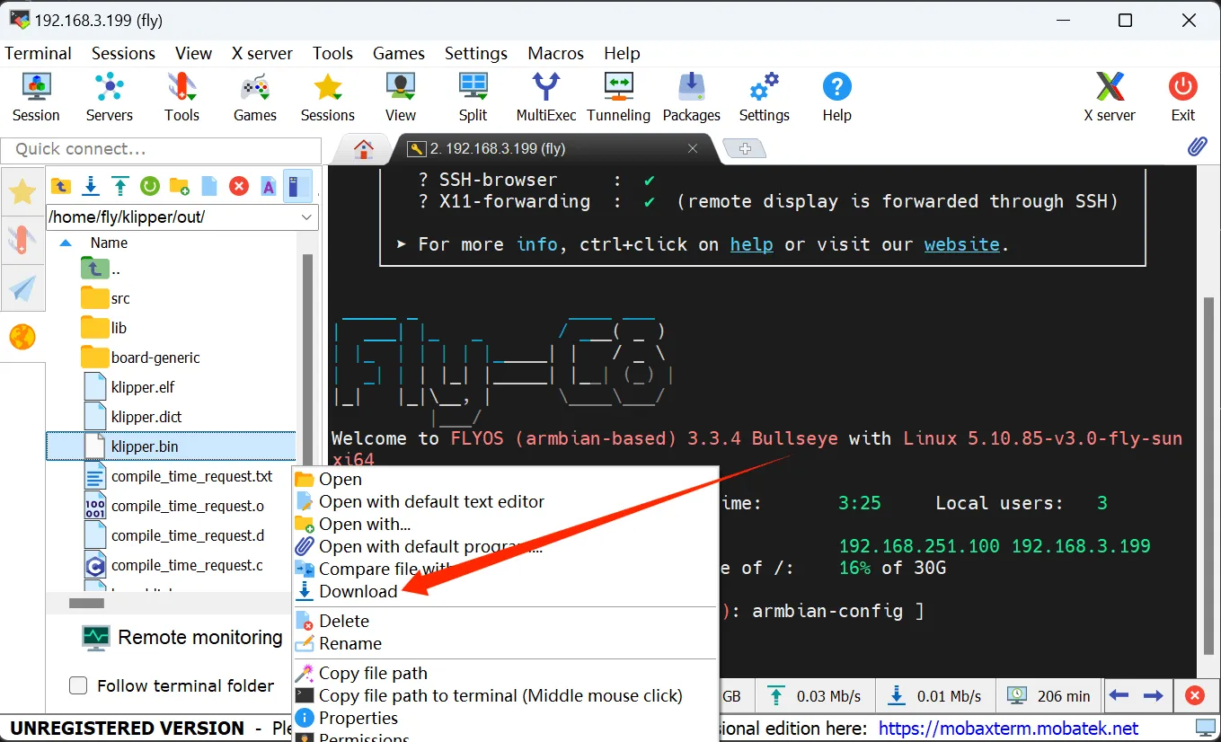 - Use MobaXterm_Personal to navigate to the file directory on the left side, find