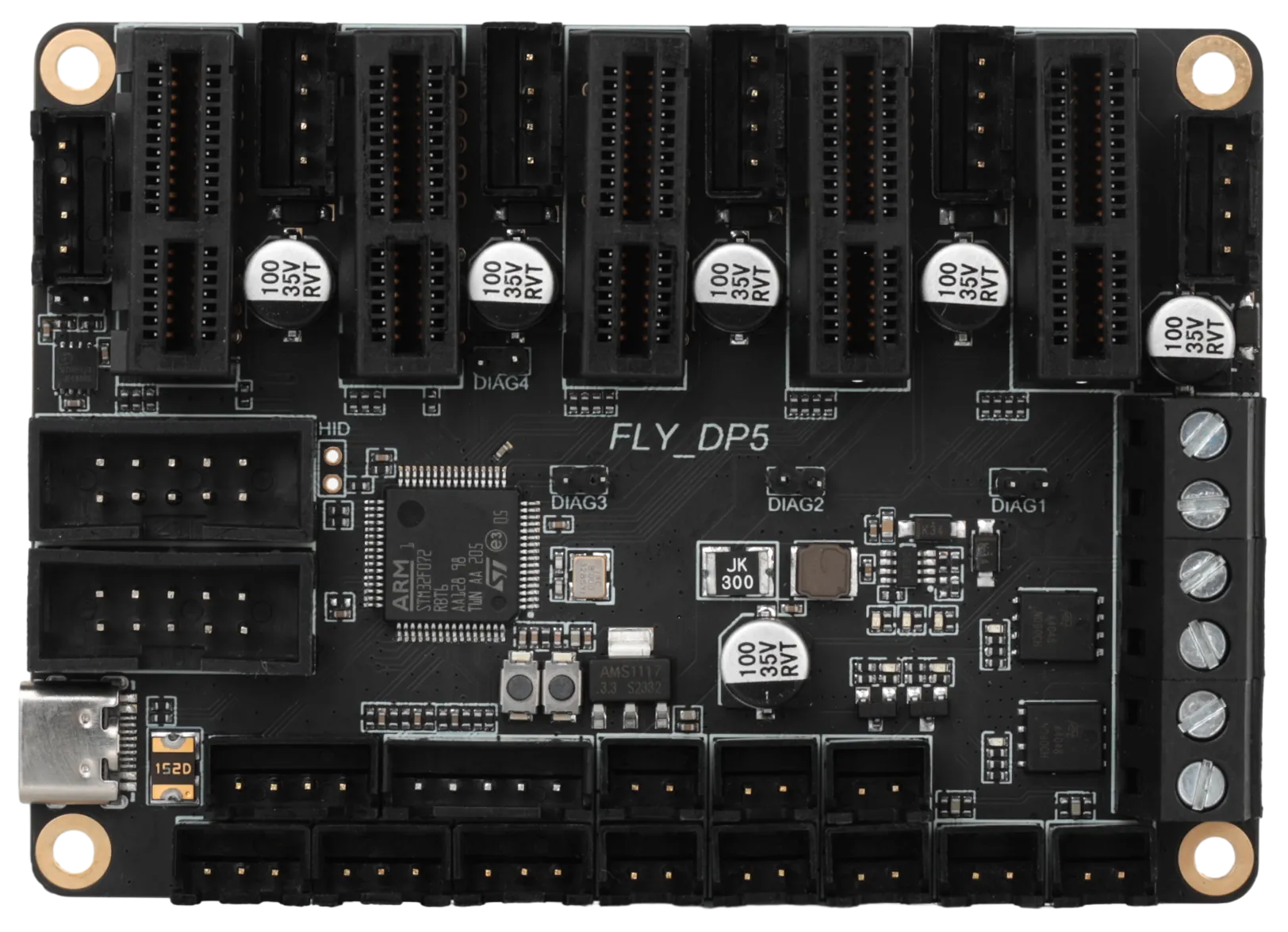 Mellow Fly-DP5 is a high-performance 3D printer motherboard developed by the Fly3D mainboard R&D team of Guangzhou Melun Electronic Technology Co., Ltd., supporting up to 5 stepper motors.