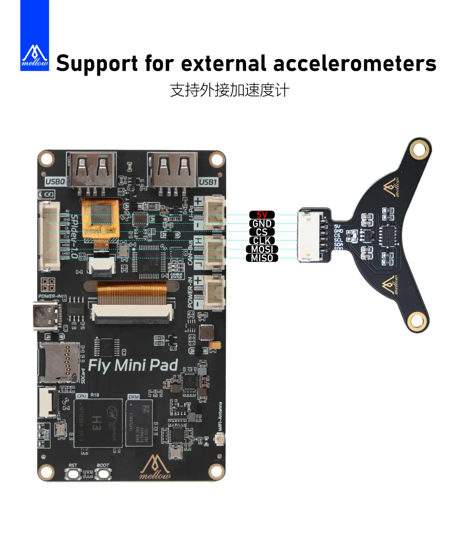 • Mini Pad can connect the accelerometer directly via the onboard interface or use a tool board with a built-in accelerometer.