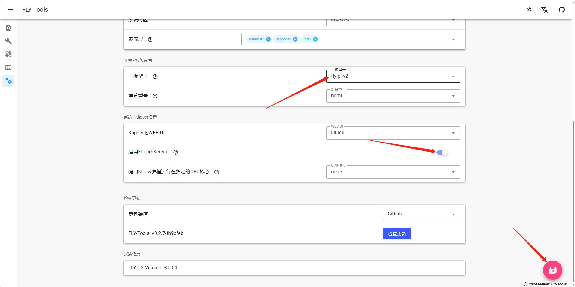 • You need to configure the screen in FLY TOOLS as shown below and turn on KS