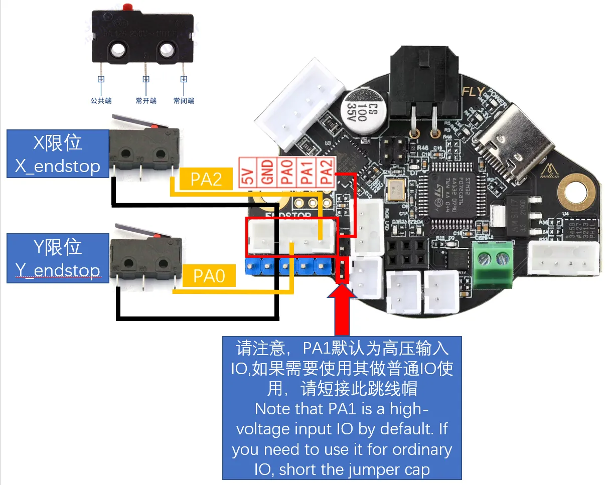 PB1 only supports PWM signal output and does NOT support signal input!!! Therefore, it cannot be used as an input for leveling sensors or limit switches!!!