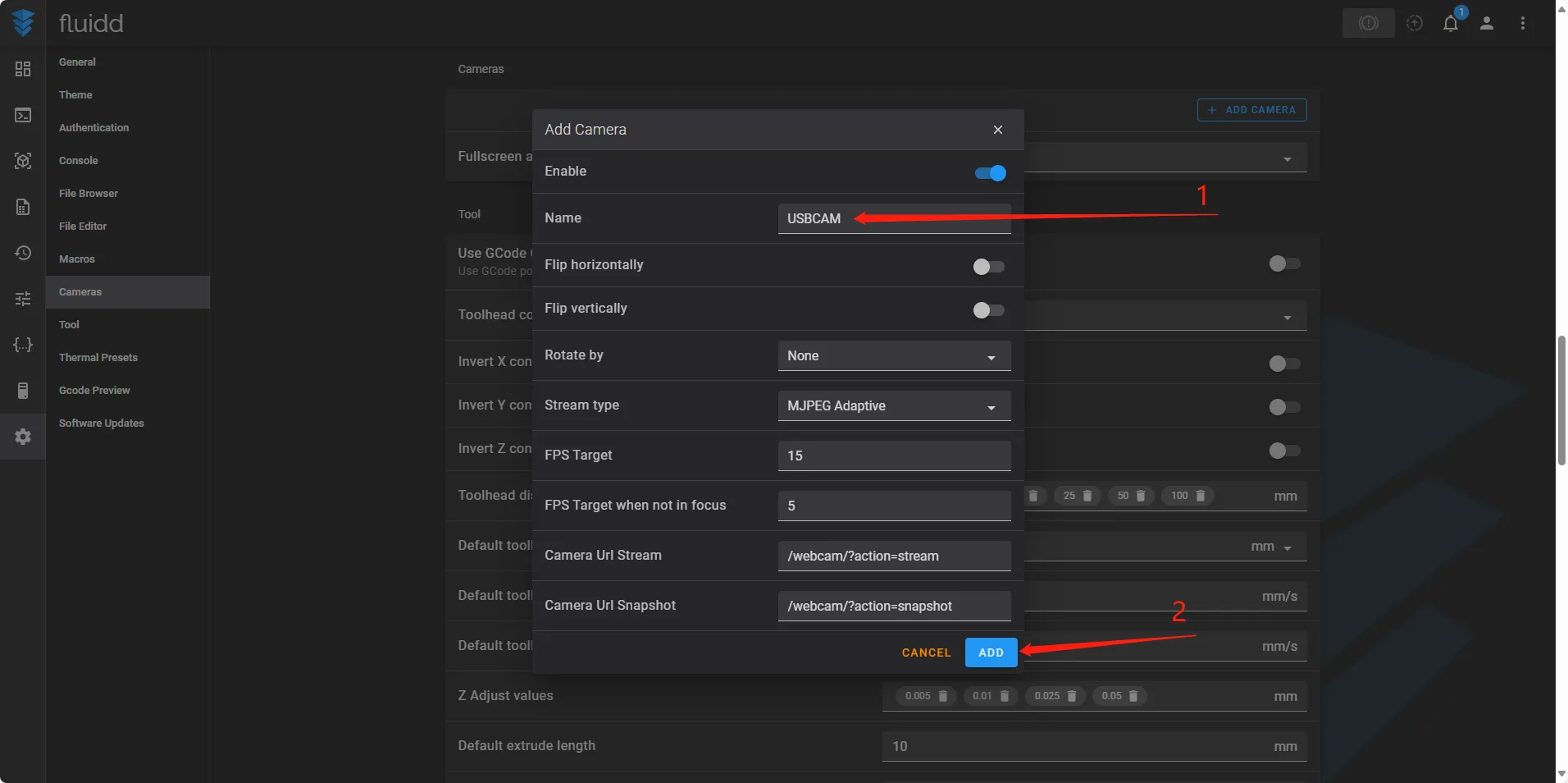• Cliquez sur les paramètres, sélectionnez la caméra, puis cliquez sur ajouter une caméra
