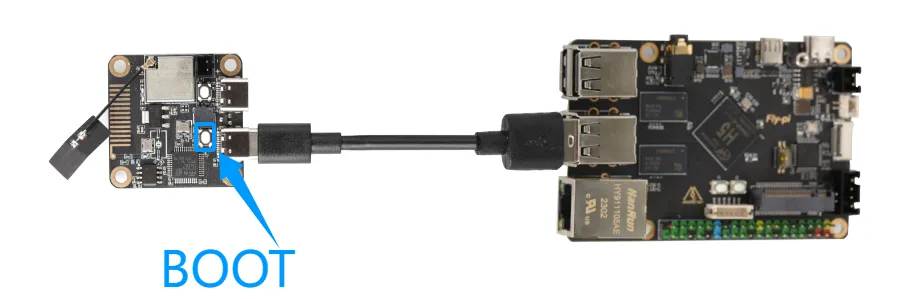 - Lorsque l'AirClick est débranché, appuyez sur le BOOT de l'STM32 et connectez le port de flashage de l'STM32 au poste hôte via un câble Type-C