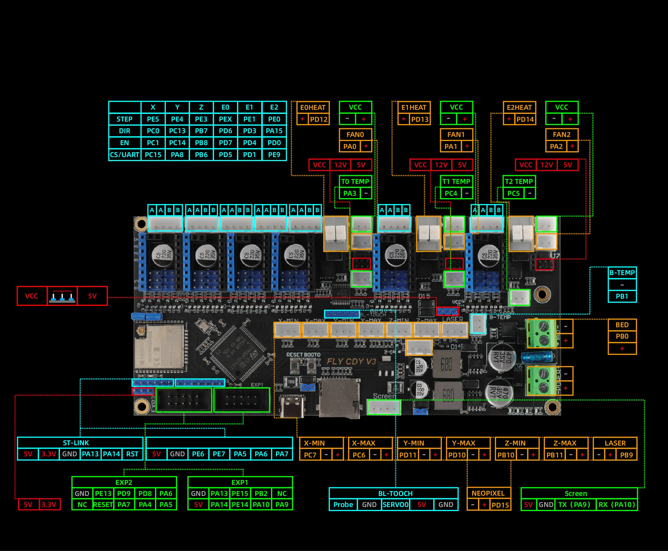 • Mode UART. Les pilotes les plus courants utilisant ce mode incluent : TMC2208, TMC2209, TMC2226, etc. Ces puces de pilote peuvent communiquer de manière asynchrone en série avec le contrôleur principal via UART, permettant de configurer la microstepping, le courant de fonctionnement, le mode silencieux, etc., en modifiant le fichier de configuration.