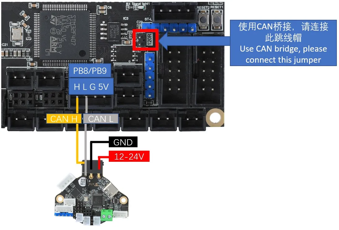 • Copiez l'ID bleu et remplissez-le dans le fichier de configuration printer.cfg sous le noeud [mcu] à l'endroit de serial: . Sauvegardez et redémarrez pour connecter la carte mère. Si Klipper indique ADC out of range, c'est normal. Connectez le lit chauffant et les thermistances, configurez correctement les broches de thermistance et de sortie pour la buse et le lit chauffant, puis sauvegardez et redémarrez.
