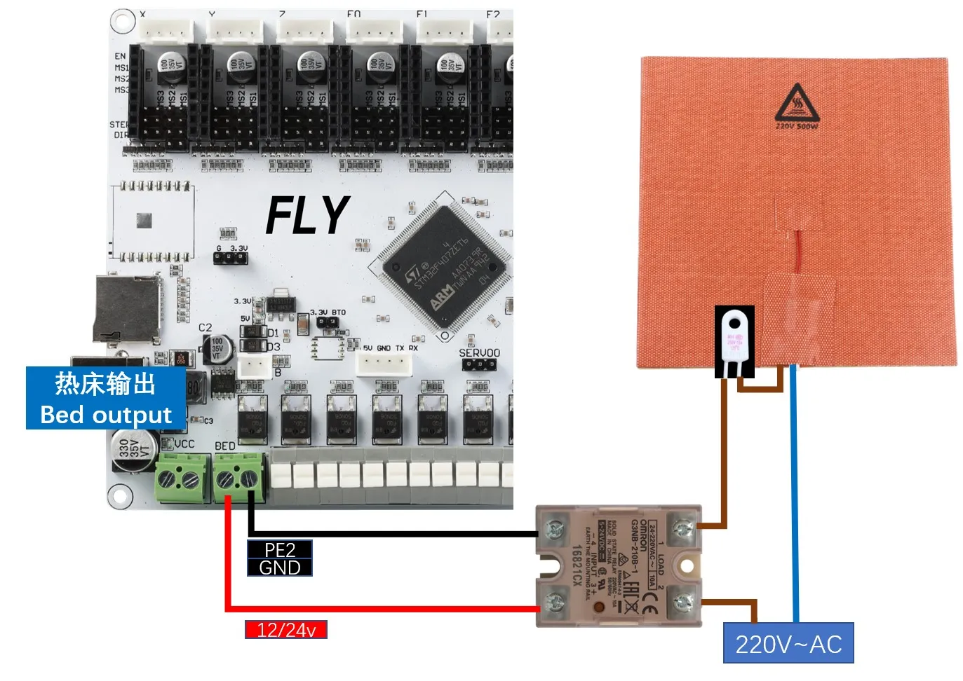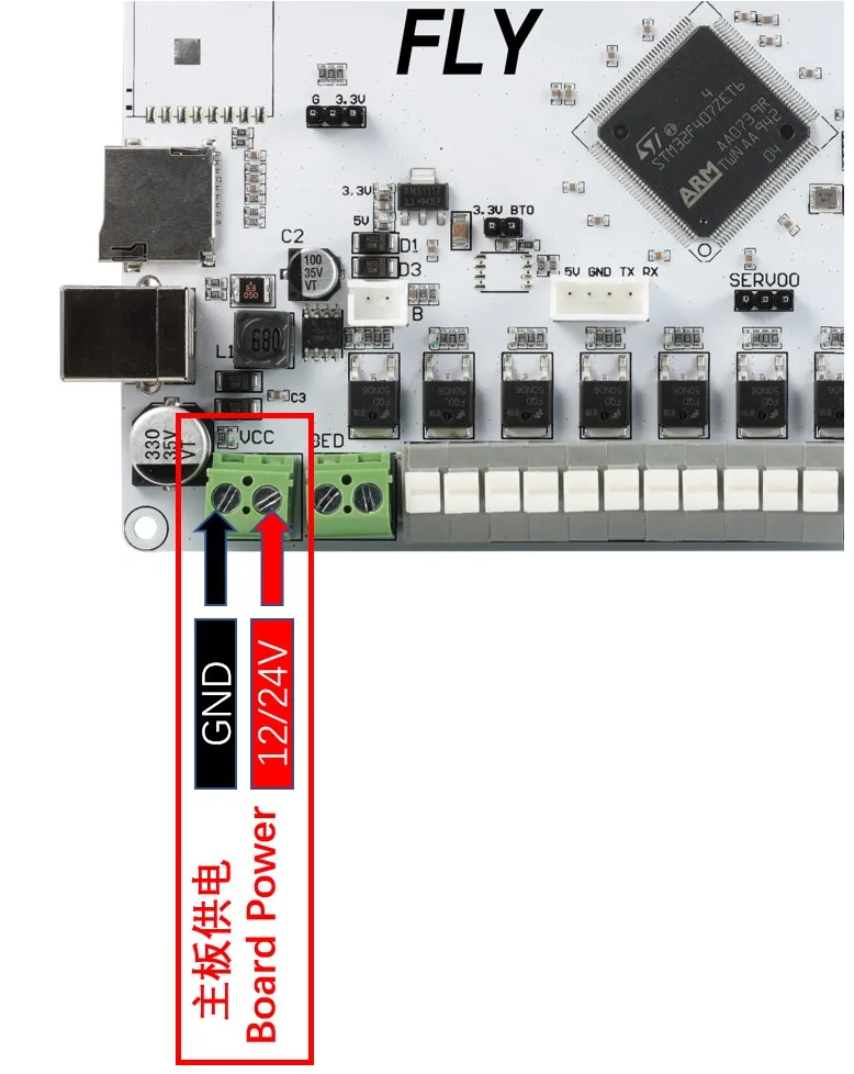 noteIl est déconseillé de connecter le Voron Tap à 24V, certaines versions utilisant 24V présentent un risque de brûlure du capteur Tap, ce qui n'est pas un problème des produits Fly, mais un défaut de conception du Voron Tap, veuillez en être informé !!!