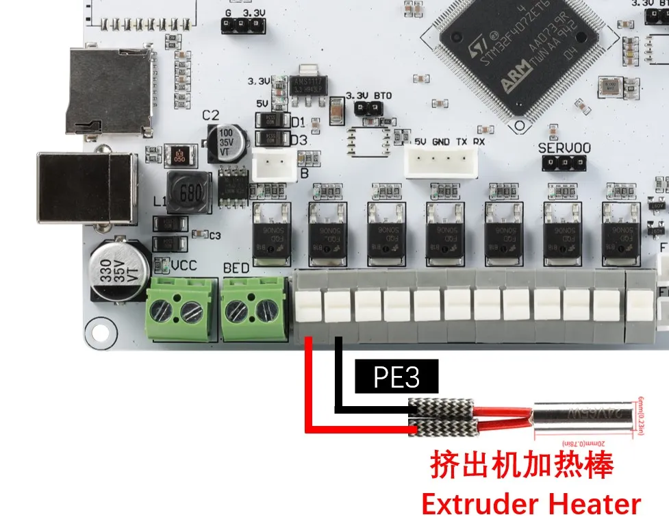 Lit chauffant DC : Lors de la connexion du lit chauffant DC via le MOSFET embarqué, veuillez noter la puissance utilisée. Le courant maximum du lit chauffant DC ne doit pas dépasser 10A. Si le courant dépasse 10A, il est recommandé d'utiliser un module MOS externe pour le lit chauffant, sinon cela pourrait endommager de manière irréversible la carte mère.