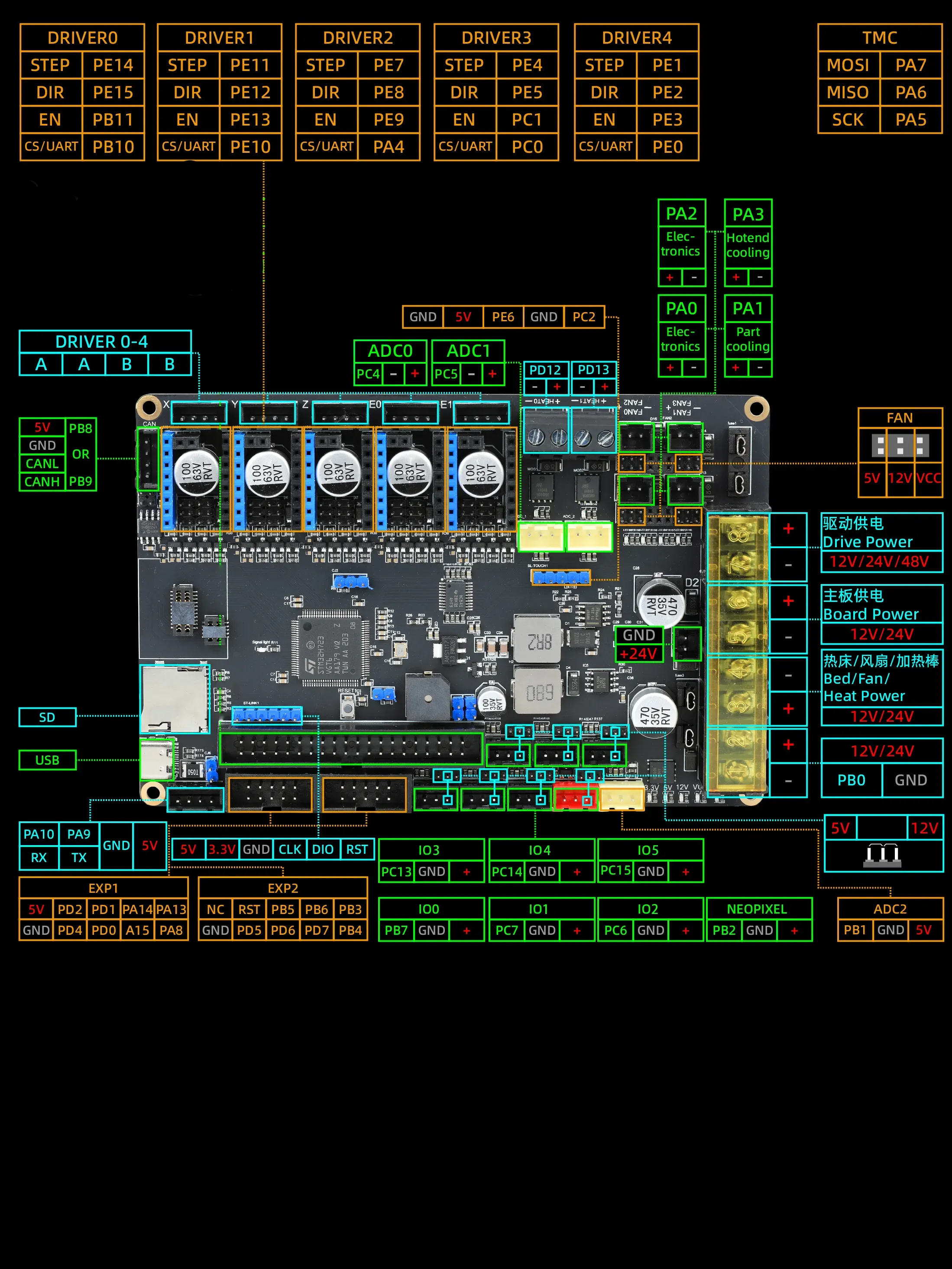 Mode SPI. Les pilotes les plus courants utilisant ce mode sont le TMC5160, TMC2230, etc. Ces puces de pilote communiquent en série synchronisée SPI avec le contrôleur principal, permettant également de configurer la micro-pas, le courant de fonctionnement, le mode silencieux, etc., par modification du fichier de configuration.