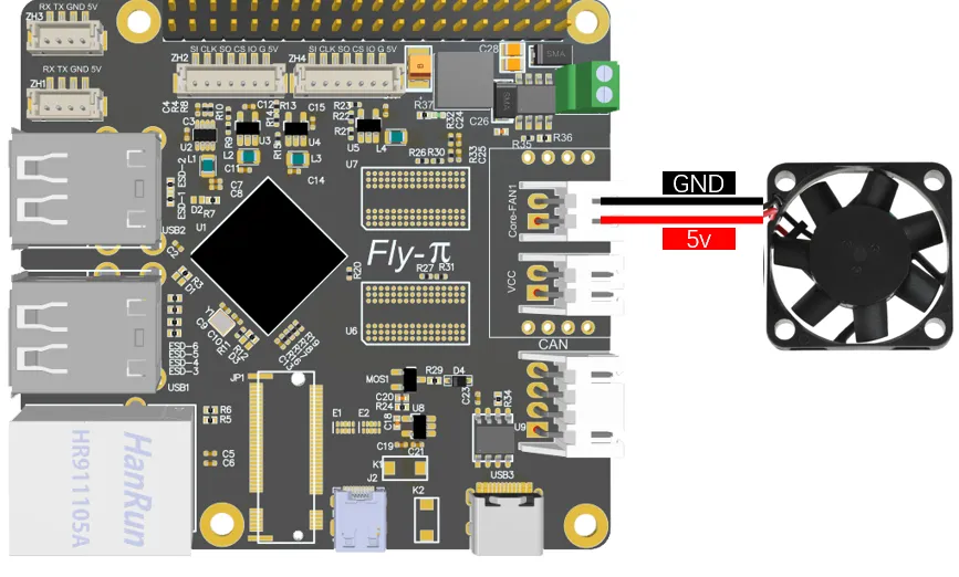 La carte Pi embarque une interface contrôlable 5V pour la dissipation thermique du contrôleur principal, le schéma de connexion est illustré ci-dessous