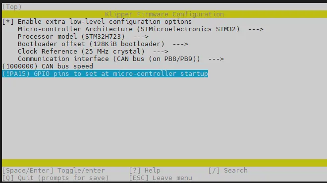cd ~/klipper && rm -rf ~/klipper/.config && rm -rf ~/klipper/out && make menuconfig -