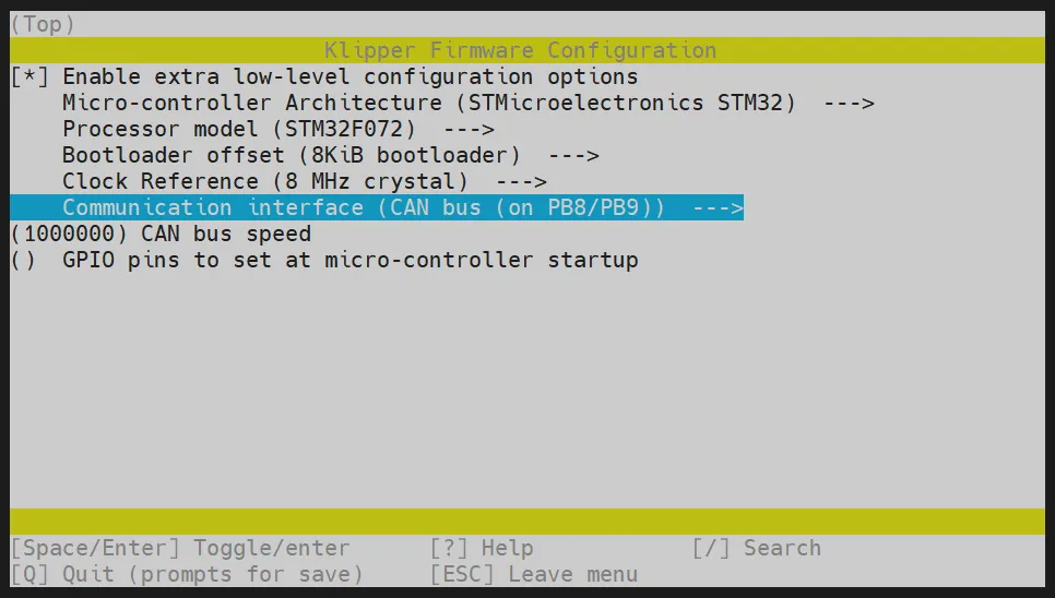 cd ~/klipper && rm -rf ~/klipper/.config && rm -rf ~/klipper/out && make menuconfig