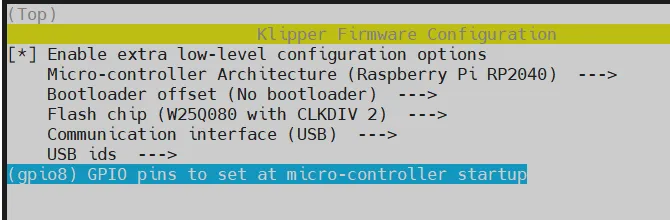 cd ~/klipper && rm -rf ~/klipper/.config && rm -rf ~/klipper/out && make menuconfig