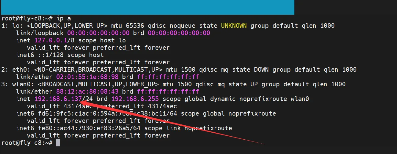 - WiFiに接続した後、キーボードからEscキーを何度か押して現在の画面を終了し、ip aを入力してエンターキーを押します。