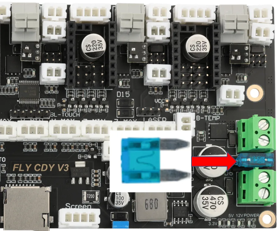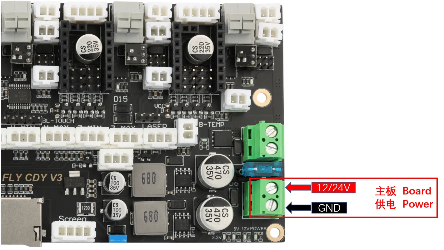 Voron Tapは 24V への接続は推奨されません。特定のバージョンでは 24V を使用すると、Tapセンサーが焼け付く可能性があります。これはFly製品の問題ではなく、Voron Tapの設計上の欠陥です。ご了承ください!!!