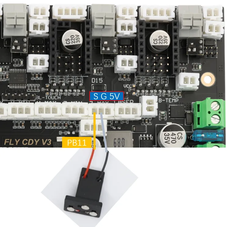 • Klickyはサードパーティのレベリングセンサーで、非常に低コストで自宅で作ることができ、性能も安定しているため、コストパフォーマンスが高く、使用をお勧めします。以下の図に示すように配線してください。