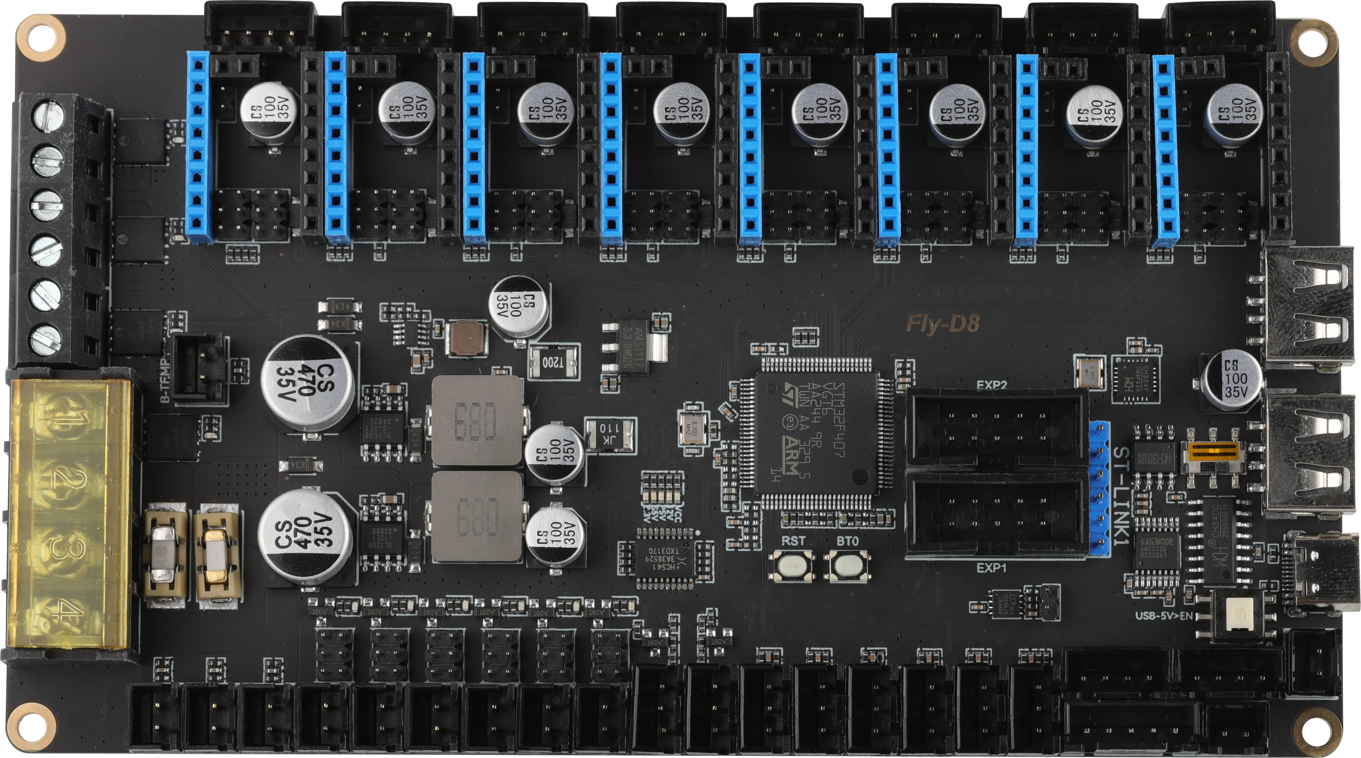Mellow Fly-D8は、広州市镁伦電子科技有限公司Fly3D基板開発チームが開発した高性能3Dプリンタ基板で、最大8つのステッピングモーターをサポートします。