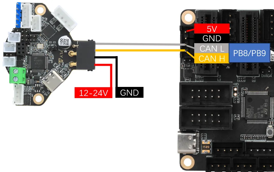 - ツールボードの電源線はCANポートに接続せず、12V-24Vの電源線に接続してください