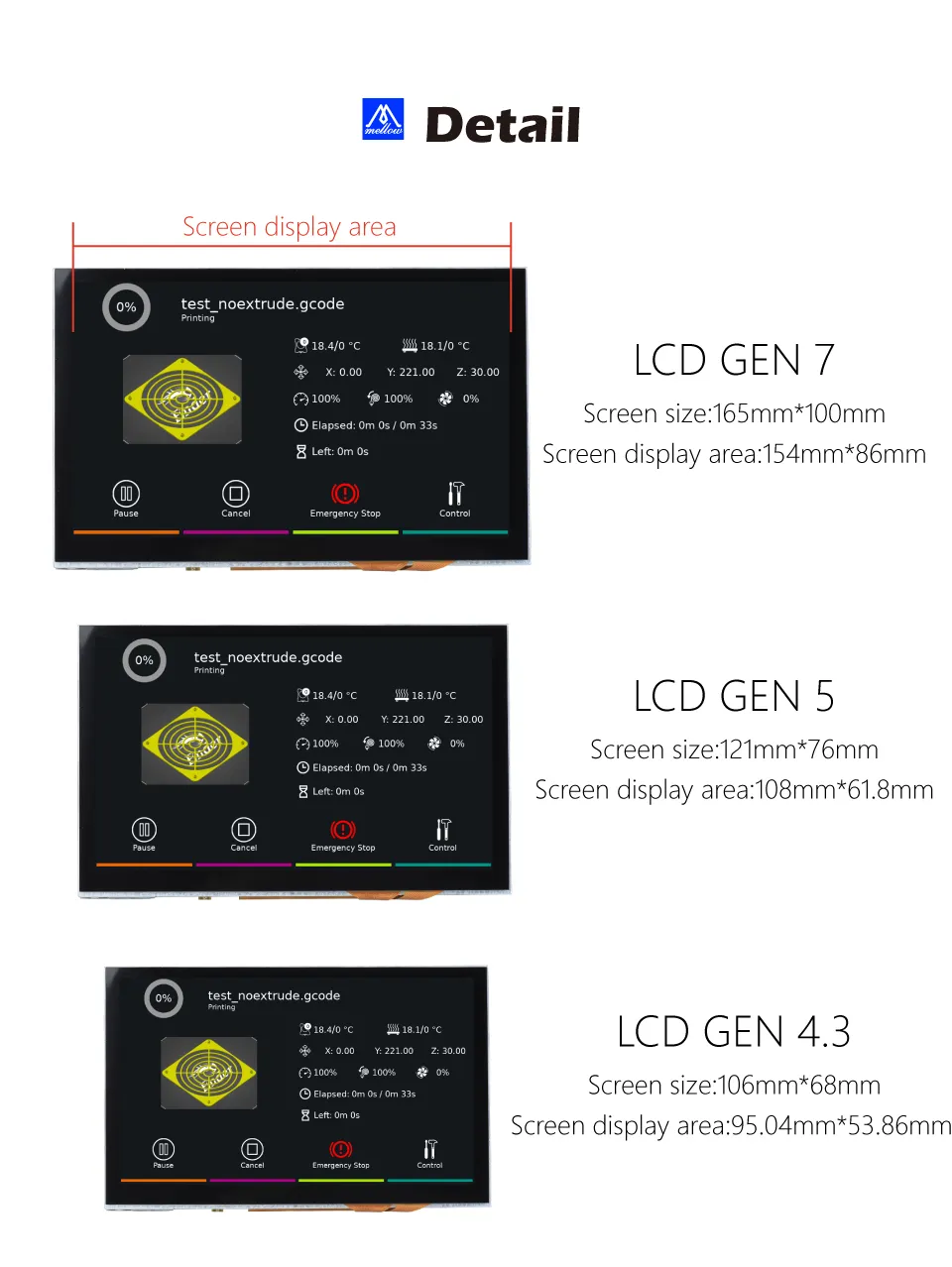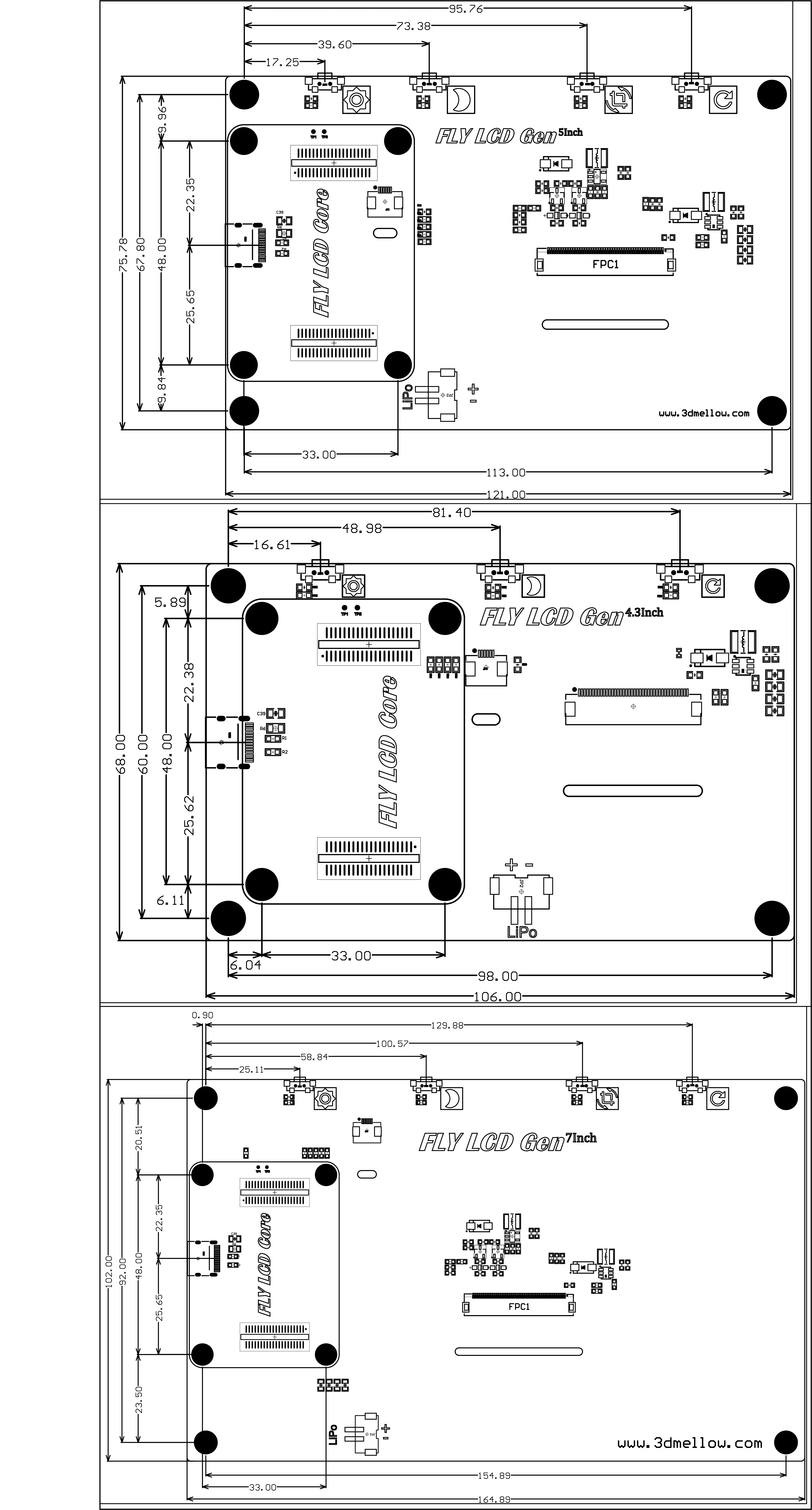 ディスプレイクラスFLY-LCDシリーズ紹介このページの見出し紹介 分離型デザイン、多種のDSIとHDMIのメイン基板に対応 多種のサイズ、4.3インチ、4インチ、7インチ 高解像度、どんな細部も見逃さない 10段階の明るさ調整に対応 180°の画面反転に対応 注意事項7インチの画面はHDMIメイン基板が選択できません、DSIメイン基板は正常に制御可能 製品サイズ