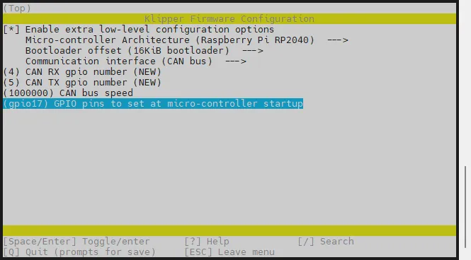 cd ~/klipper && rm -rf ~/klipper/.config && rm -rf ~/klipper/out && make menuconfig
