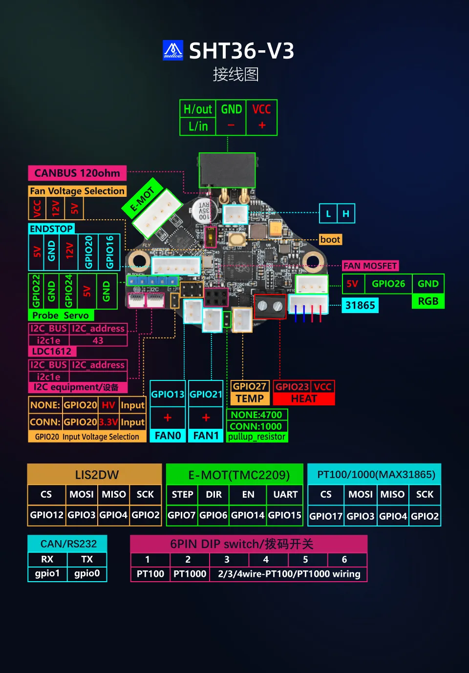 ツールボードクラスFLY-SHT36シリーズフライSHT36-V3マザーボードの参考配線SHT36 V3 マザーボードの参考配線 注意事項画像の解像度が高すぎるため、ウェブ上で見ると詳細がわかりにくいです。マウスカーソルを配線図の上に置き、右クリックして「画像を別名で保存」を選び、画像をデスクトップに保存してからご覧ください!!!