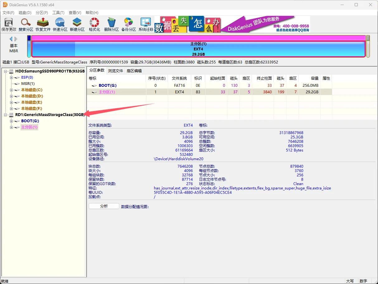 DiskGenius.exe를 엽니다.- 정상적으로 작동하면 백업할 디스크가 표시됩니다.