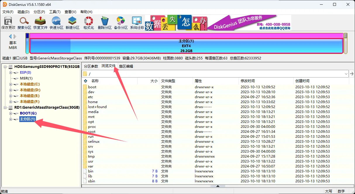 - 왼쪽에서 주 분할을 클릭하고, 상단의 파일 탐색을 클릭하면 아래에 파일이 나타납니다.