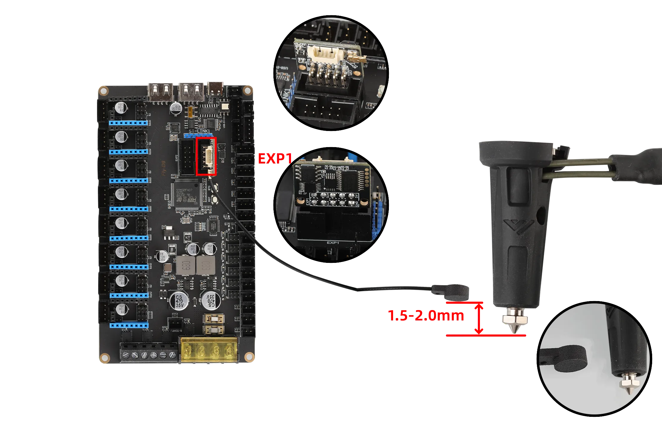 모듈 & 확장 보드 클래스BDsensor-m설치 가이드이 페이지에서팁 BDsensor-m는 메인보드의 EXP1 및 BL-TOUCH* 인터페이스를 직접 사용할 수 있습니다. 주의사항 라인의 순서가 올바른지 주의하세요, 그렇지 않으면 장치가 손상될 수 있습니다. BDsensor-m 크기 라인 순서 배치 BDsensor-mBL-TOUCH기능 소개SDAZmin제한GNDGNDGNDSCLK서보5V5V5V 전원GNDGNDGND 설치 도식도