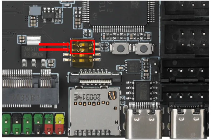 이 방법으로 디프 스위치를 조정한 후, 하단의 USB 포트는 하위 머신에 의해 점유되므로 다른 장치를 연결하지 마세요.