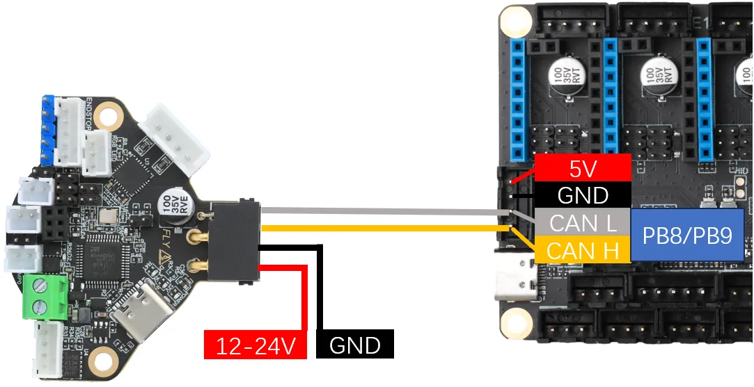 • 파란색 ID를 복사하여 printer.cfg 설정 파일의 [mcu] 노드의 serial: 에 입력합니다. 저장 후 재부팅하면 메인보드에 연결됩니다. Klipper가 ADC out of range 오류를 표시하는 것은 정상이며, 히트베드와 열센서를 연결하고 노즐과 히트베드의 열센서 핀과 출력 핀을 설정한 후 저장 후 재부팅하면 됩니다