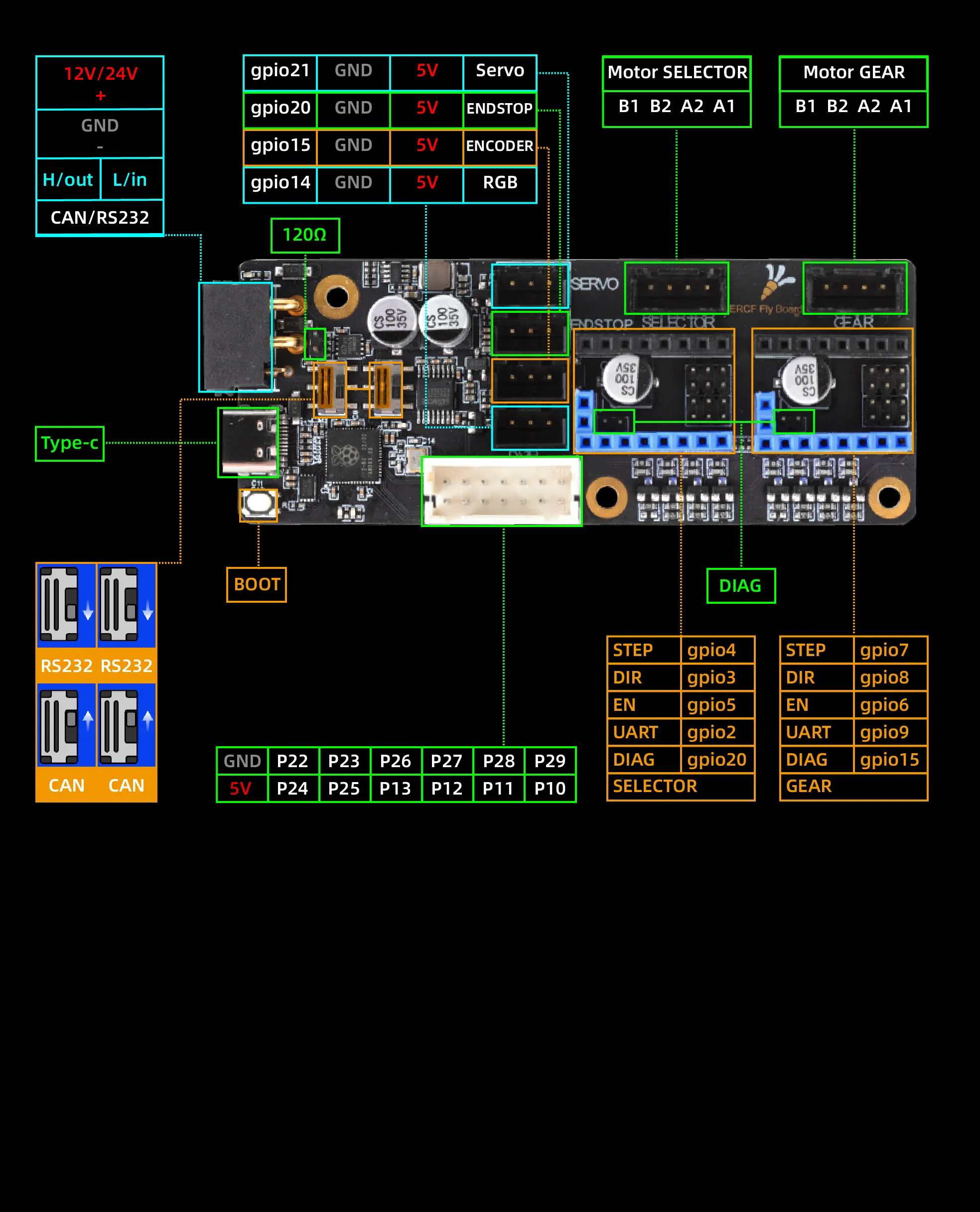 공구 보드 클래스FLY-ERCF 시리즈플라이-ERCF V2메인보드 배선ERCF 메인보드 참조 배선 주의사항이미지 해상도가 너무 높아 웹 페이지에서 볼 수 없으므로, 마우스 커서를 배선도 위에 놓고 오른쪽 클릭하여 이미지를 '다른 이름으로 저장'을 선택해 데스크탑에 저장한 후 확인하십시오!!!