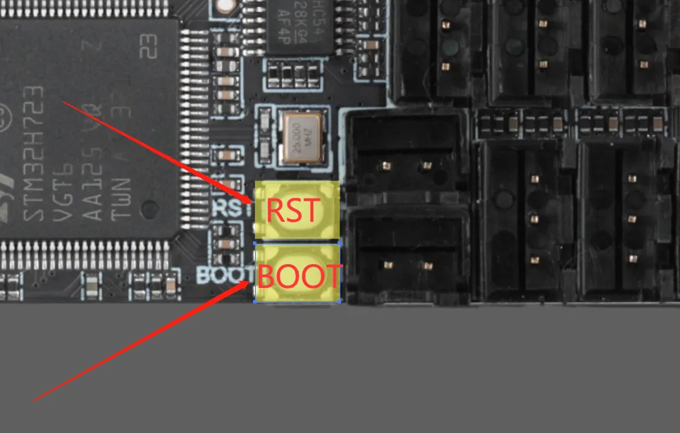 • 장점: 두 번 리셋하거나 빠르게 두 번 전원을 차단하면 Katapult 펌웨어로 진입할 수 있으며, 사전 설정된 LED가 깜박이기 시작합니다. LED가 없으면 깜박이지 않습니다.