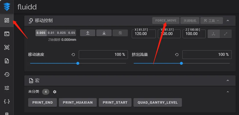 Команда для принудительного перемещения на 1 мм туда и обратно