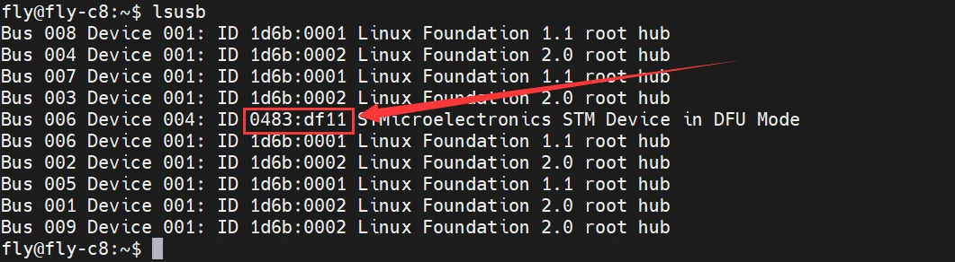 • 如果输入下方后没有ID出来,但是lsusb有设备请更换上位机或者更换上位机系统