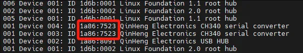 lsusbничего не происходит, это проблема системы, и мы не можем помочь. Вам нужно заменить систему или использовать проверенную систему - Появляется информация, как на изображении ниже. Обратите внимание, что это только для справки. Вам нужно только определить символы после ID