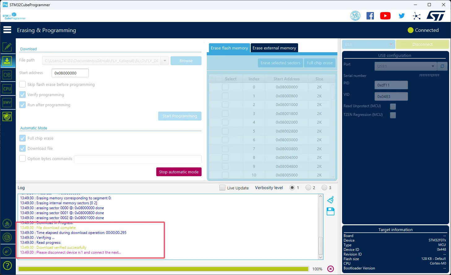 10. Нажмите внизу Start automatic mode, чтобы начать запись прошивки