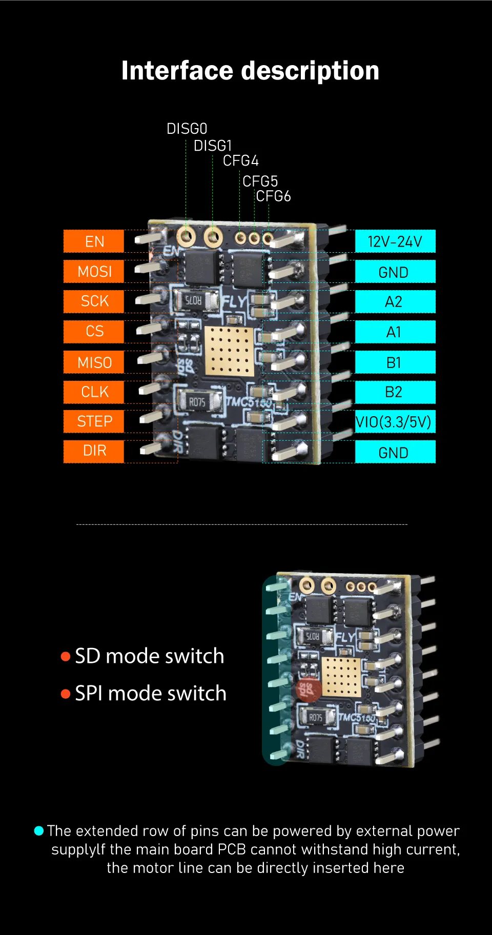 • SPI-пин для FLY драйвера находится слева, четвертый сверху вниз, CS-пин совпадает с SPI-пином. Если пины на плате не соответствуют, SPI не будет работать
