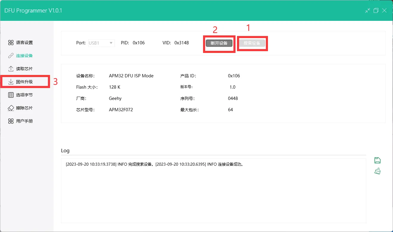 - Нажмите кнопку для начала обновления прошивки и немного подождите, после завершения записи можно отсоединить кабель Type-C и перемычку